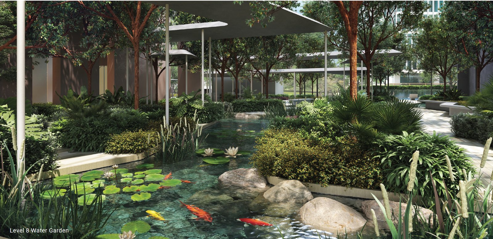 Find your zen as tranquil, Koi-filled waters flow seamlessly through the Level 8 podium.