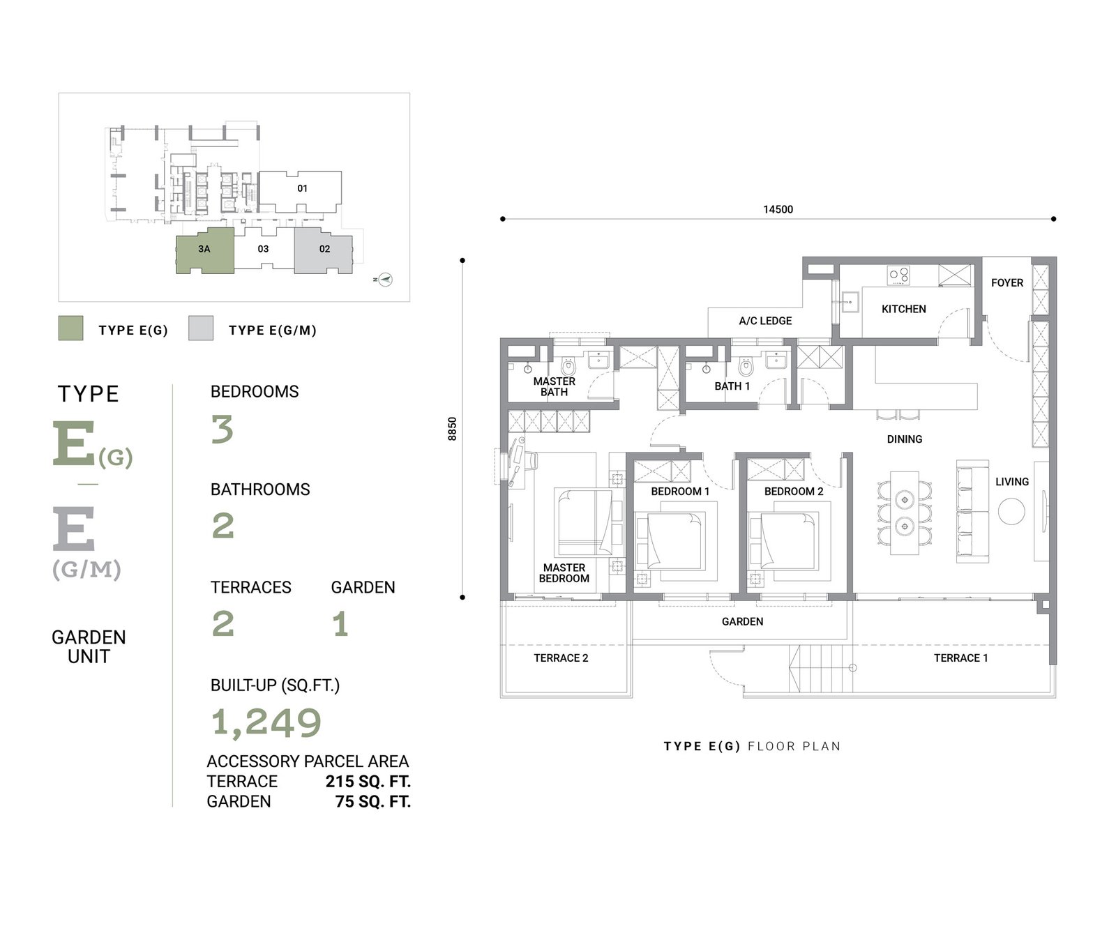 A unique 3-bedroom ground-level residence boasting a private garden and twin terraces. Perfect for nature lovers who desire the outdoor space of a landed home with the luxury amenities of a suite.
